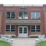 The Fayette Pool opened July 4, 1936. It was dedicated as Howard County’s World War I Memorial. The pool was funded by the City of Fayette, through the Works Progress Administration (WPA), Howard County and the State of Missouri. The Art Deco design was patented by nationally renowned civic engineer Wesley Bintz. It is only one of two remaining Bintz swimming pools in Missouri and one of approximately ten still operating in the United States. The pool is listed in the National Register of Historic Places and is a City of Fayette Historic Landmark.